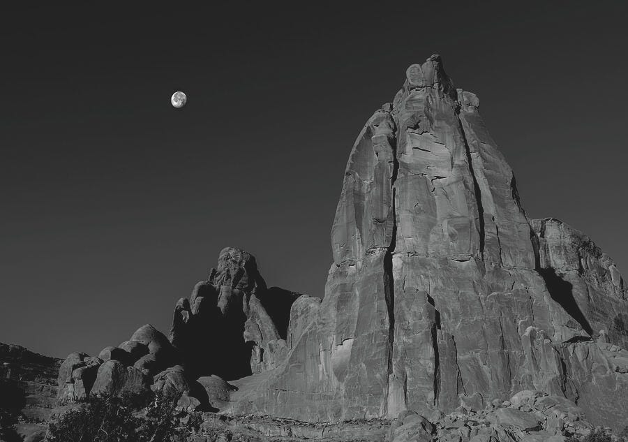 | Moon Over Arches Spire Monochrome |