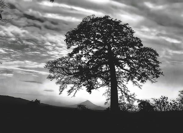 | Acacia and Volcano Silhouetted |